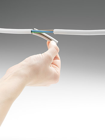 Клещи-щипцы для снятия участка оболочки кабеля длиной 55 мм. Идеальны для работы в стесненном пространстве, например, в кабельных каналах и работы с кабелями типа NYM сечением от 3x1,5 мм² до 5x1,5 мм²