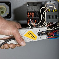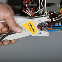 Автоматические клещи-щипцы для зачистки комбинированных проводников для подключения распредкоробок с датчиками и исполнительными устройствами, а также контроллерами, создавались специально для этих целей. Внутренние жилы и экранировка кабелей с диаметром от 4,40 мм при этом не повреждаются. Клещи полностью автоматически подстраиваются под различные диаметры кабелей. Таким образом, снятие изоляции происходит быстро и надежно.