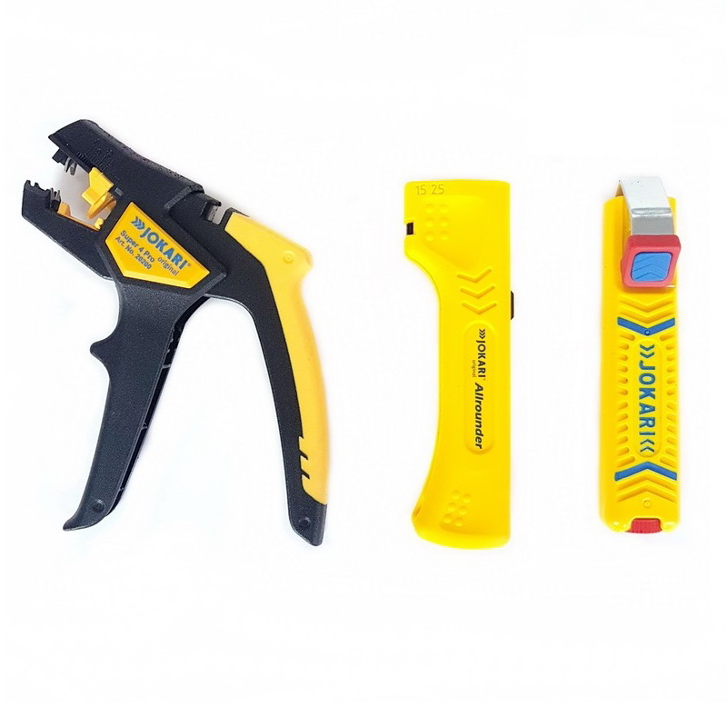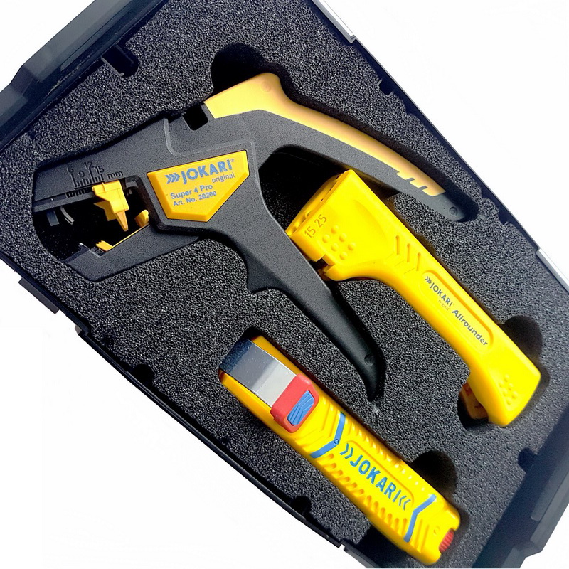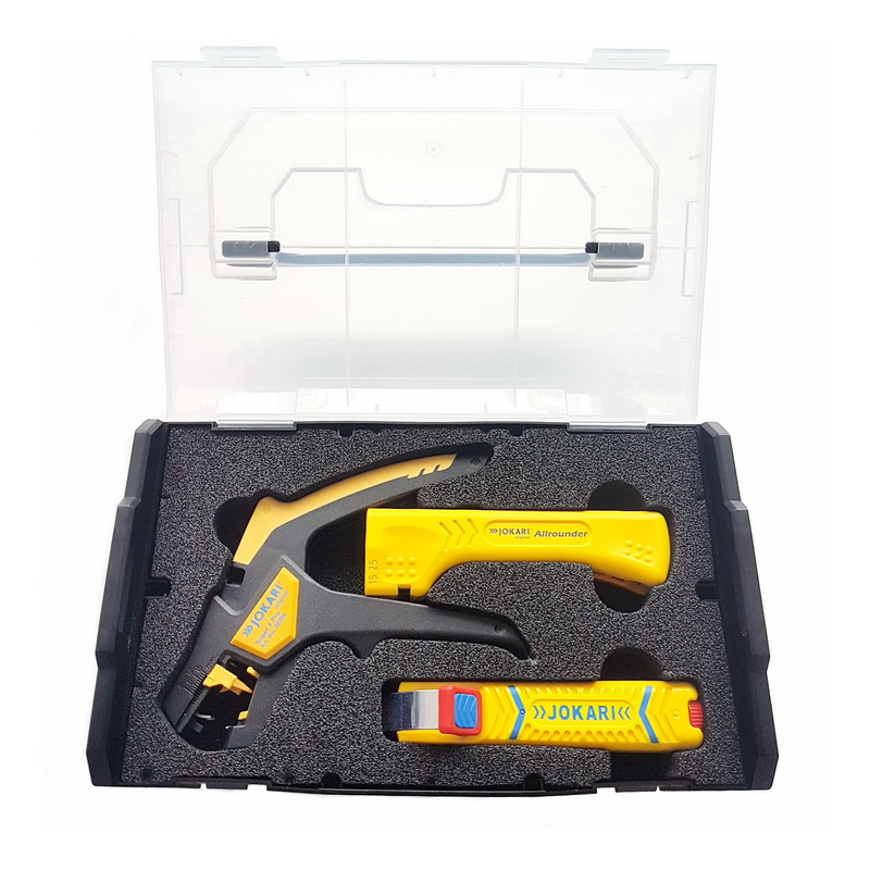 Универсальный набор съемников для снятия изоляции в стильном кейсе Sortimo L-Box Mini. Состоит от трех самых популярных инструментов: Jokari Super 4 Pro, Jokari Allrounder, Jokari Secura №27