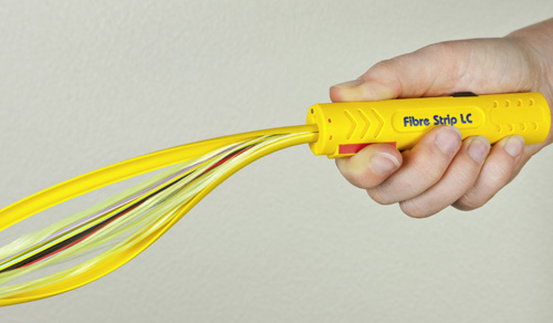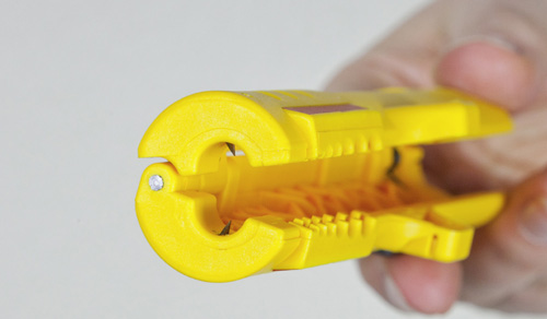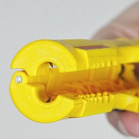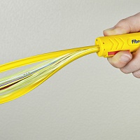 Продольный рез с двух сторон внешней оболочки оптоволоконных кабелей, например, кабелей I-VHH LWL, с внешним диаметром от 8,2 мм. Карманная клипса.