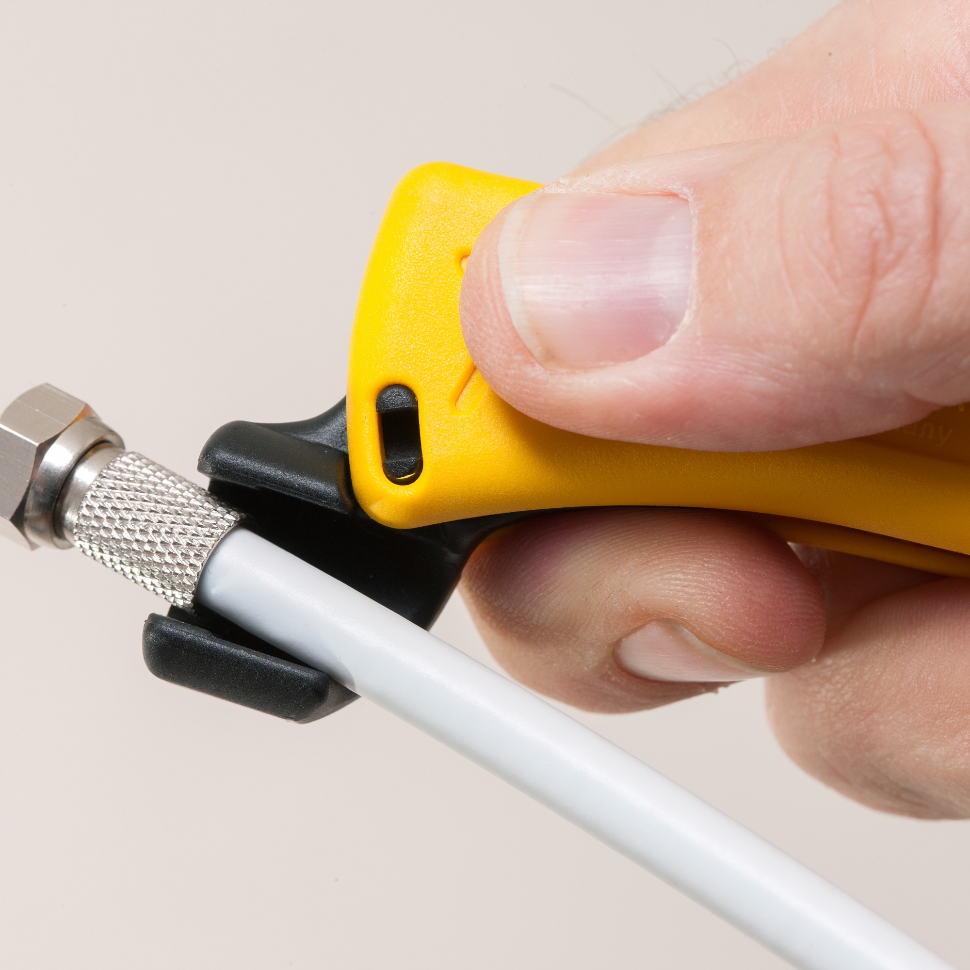 Приспособление для снятия изоляции со всех коаксиальных кабелей, например, TV-Coax, RG 58U/RG59U, PVC-Flex 3х0,75 mm². С интегрированным ключом SW11, изготовленным из пластмассы,