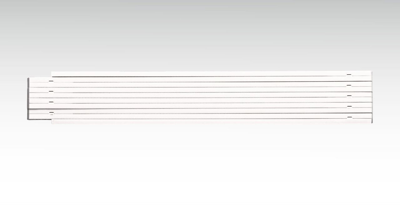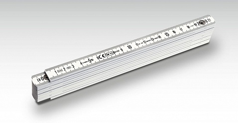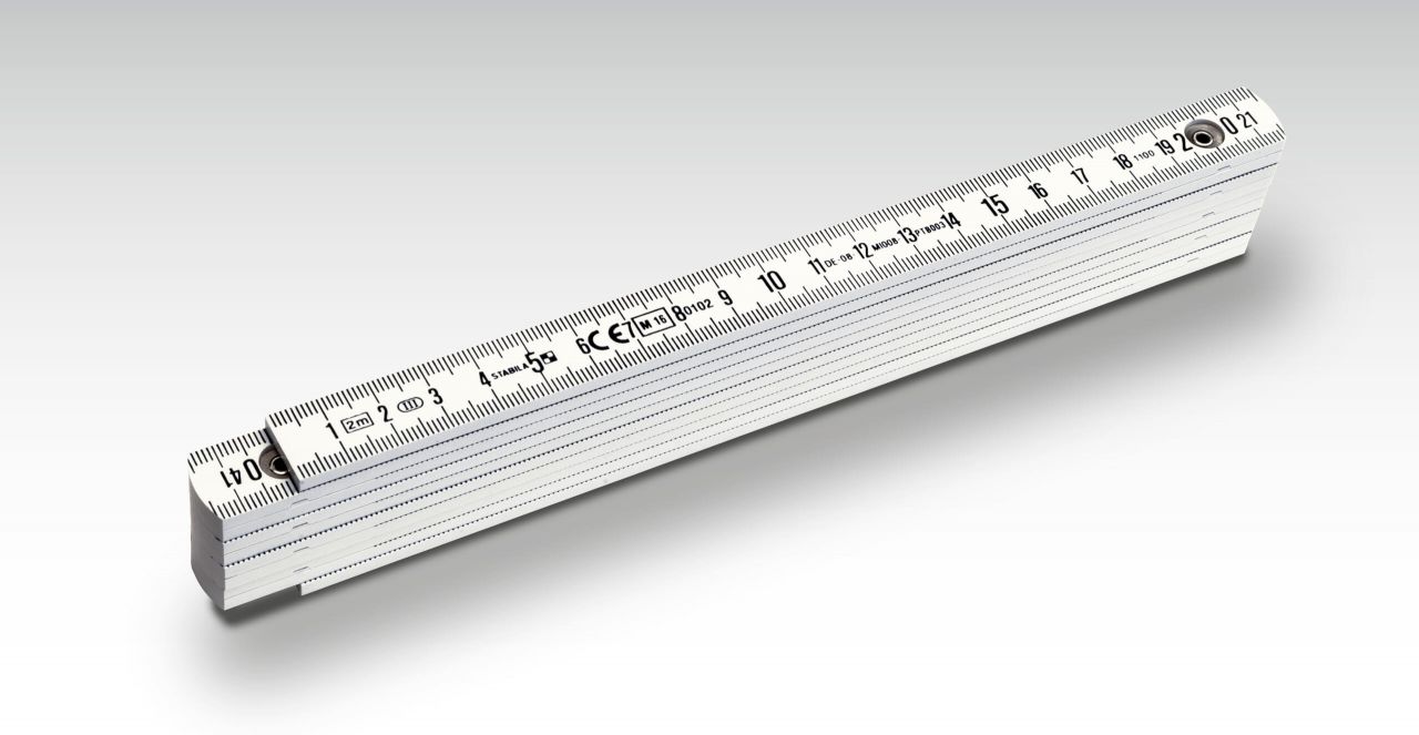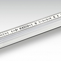 Двусторонняя шкала с делением в сантиметрах и миллиметрах по обеим кромкам складного метра.