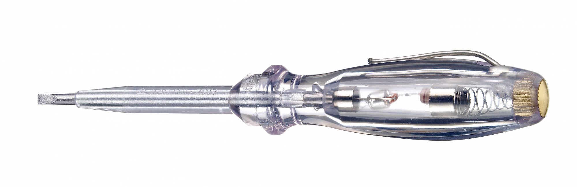 Ровная и прозрачная, как стекло, рукоятка позволяет без помех увидеть из любого положения красную контрольную лампу, установленную в рукоятке. Индикатор напряжения изготавливается в соответствии с нормами DIN и проходит испытания в соответствии с VDE/GS при работе в диапазоне от 150 до 250 вольт. Тем самым гарантируется высочайшая надежность!