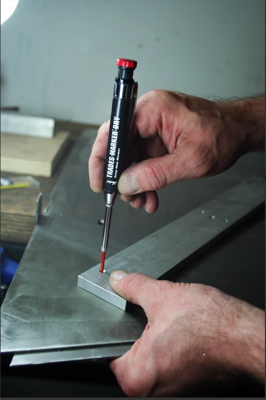 TRADES-MARKER® DRY – это автоматический графитовый карандаш с удлинённым тонким наконечником. Он имеет металлический корпус, что делает его более прочным по сравнению с пластмассовыми аналогами. У него также имеются удобная точилка и колпачок. Его можно использовать с цветными стержнями для светлых или тёмных поверхностей, а так же со стержнями для сварки Silver Streak и Red Riter.