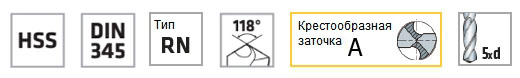 Применяется для вертикально-сверлильных станков и станков с ЧПУ. Сверлит без зернения благодаря специальной заточке. Высокопроизводительная быстрорежущая сталь.118° угол заточки конуса. Предназначено для сверления углеродистых, легированных сталей (прочность - до 1100 Н/мм²), легированных улучшенных сталей (прочность - до 1300 Н/мм²), серого, ковкого и высокопрочного чугуна, графита, алюминиевых и медных сплавов, пластмассы, мельхиора, металлокерамических сплавов на основе железа.