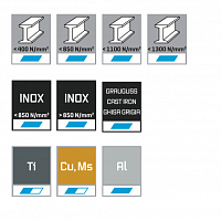 Область применения: высокопроизводительная твердосплавная фреза для черновой обработки, особенно подходит для обработки сталей от 500 до 1.400 Н / мм², нержавеющей стали, серого чугуна и титана. Высокая производительность резки при меньшей мощности привода = MTC.