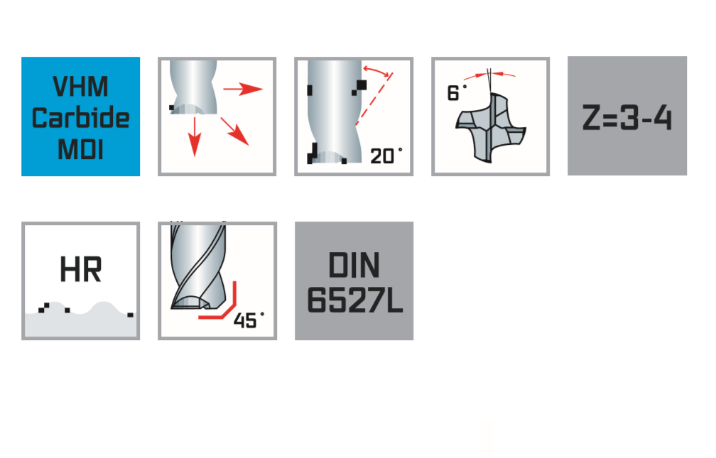 Область применения: высокопроизводительная твердосплавная фреза для черновой обработки, особенно подходит для всех видов сталей до 1.400 Н / мм², высокопрочных нержавеющих сталей, серого чугуна, а также алюминия с короткой стружкой и алюминиевого литья. Высокая режущая способность.