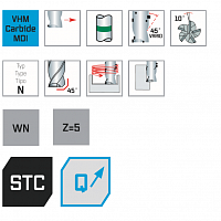 Speedtwister Universal, Ø 16.0 STC Trochoidal end mill, 5xd, Z=5, 45° vario, weldon flat DIN 6535-HB, 6535-HВ TWINDUR