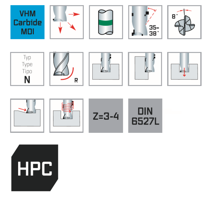 Высокопроизводительная концевая фреза для универсального применения. Чистовая, черновая и черновая обработка одним и тем же инструментом. Различные углы спирали влияют на плавность хода без вибрации и отличную поверхность. Поколение 4.0 устанавливает новые стандарты производительности резки.