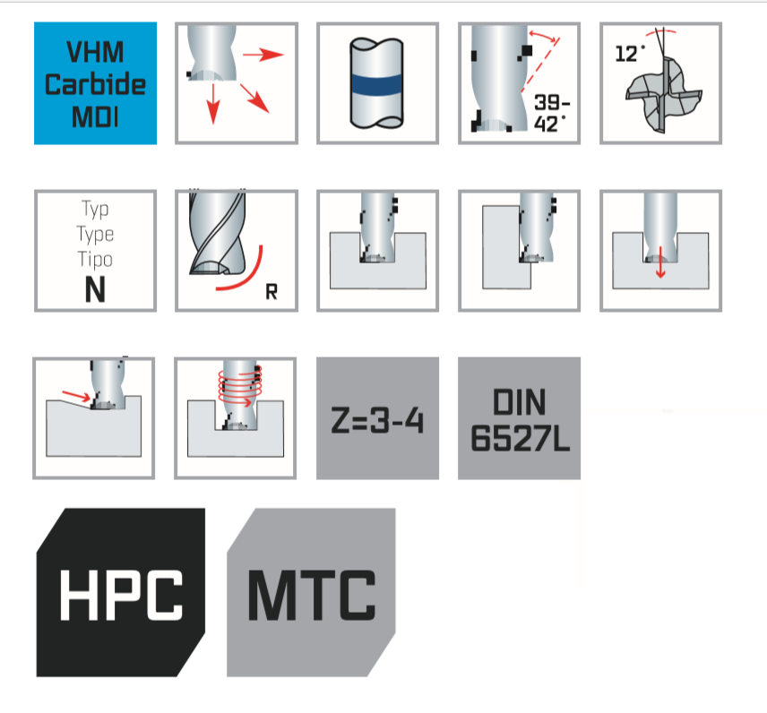 Высокопроизводительная концевая фреза с твердосплавными напайками, особенно подходящая для резки аустенитных нержавеющих сталей: чистовая обработка, черновая обработка и черновая обработка одним и тем же инструментом. Различные углы спирали влияют на плавность хода без вибрации и превосходную поверхность. Высокая производительность резки.