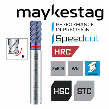 Высокопроизводительная концевая фреза , особенно подходящая для обработки закаленных и высокопрочных сталей. Высокий уровень жесткости обеспечивает хорошую скорость подачи и длительный срок службы, в то время как угол спирали создает очень хорошее качество поверхности обрабатываемой детали. Фреза используется для кругового фрезерования (чистовая обработка). Для небольших глубин также возможна резка, в этом случае скорость подачи должна быть уменьшена на 50%.