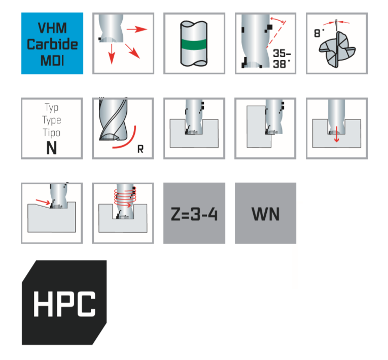 Высокопроизводительная концевая фреза для универсального применения. Чистовая, черновая и черновая обработка одним и тем же инструментом. Различные углы спирали влияют на плавность хода без вибрации и отличную поверхность. Поколение 4.0 устанавливает новые стандарты производительности резки.