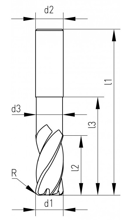 Твердосплавная концевая фреза с угловым радиусом Speedcut – Aluminium, удлиненная серия, разные углы спирали.