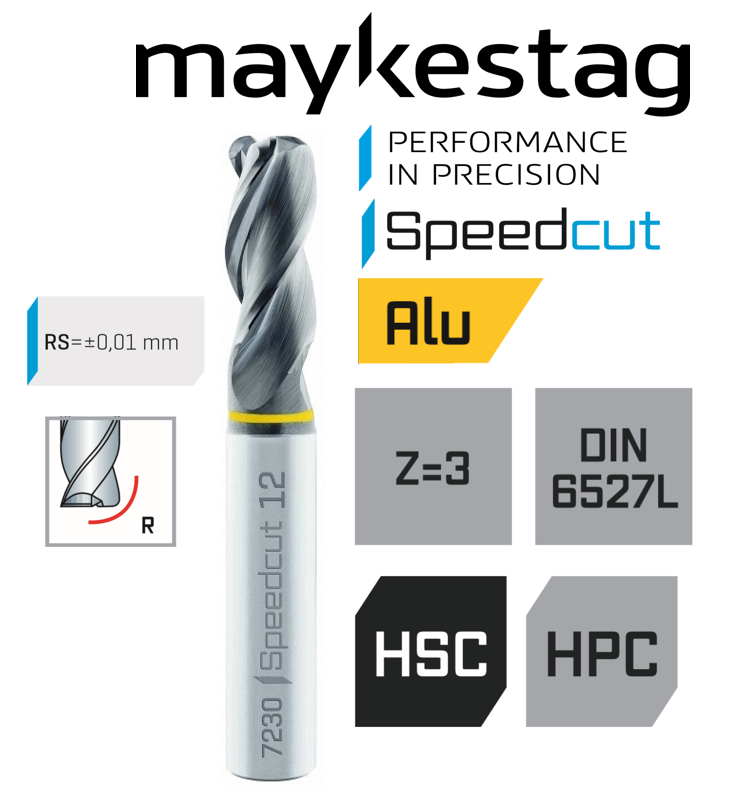 Твердосплавная концевая фреза с угловым радиусом Speedcut – Aluminium, удлиненная серия, разные углы спирали.