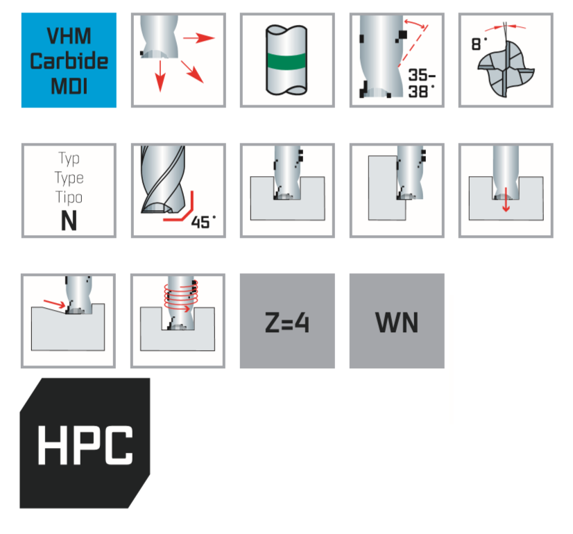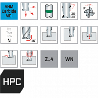 Высокопроизводительная концевая фреза с твердосплавным покрытием для универсального применения, отлично подходит для фрезерования пазов и черновых карманов. Большое пространство для стружки, агрессивный разрез и динамическое пространство для стружки для оптимизированной транспортировки стружки Различные спиральные углы влияют на плавность хода без вибрации. Благодаря меньшему энергопотреблению также подходит для приводных инструментов на токарных станках с ЧПУ (MTC).