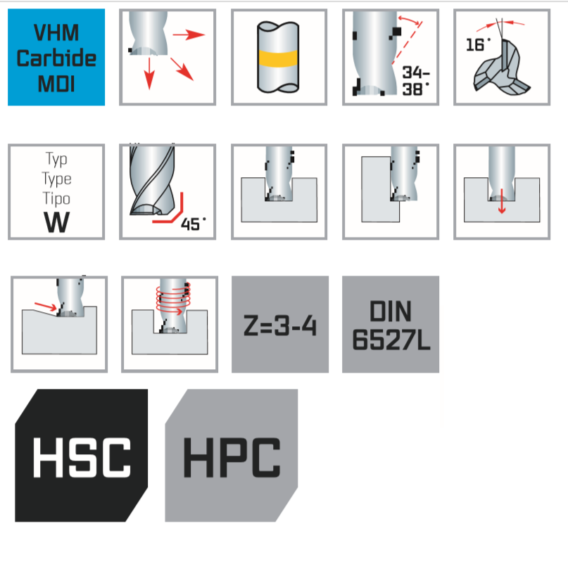 Высокопроизводительная концевая фреза из твердого сплава, особенно для алюминия. Центровка полотна обеспечивает высочайшую стабильность, превосходное разрушение стружки и транспортировку стружки благодаря оптимизированному методу производственного шлифования, поэтому чрезвычайно гладкая поверхность. Максимальный объем резки и превосходное качество поверхности благодаря уникальной геометрии режущей кромки.