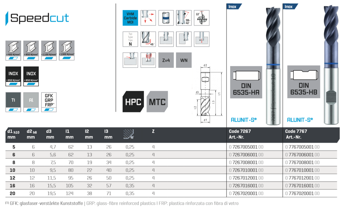 SC-SPEEDCUT Inox, Z=4, Ø 6.0 39-42°, extra long, relieved, cyl.shank DIN 6535-HA,6535-HB, ALUNIT-S