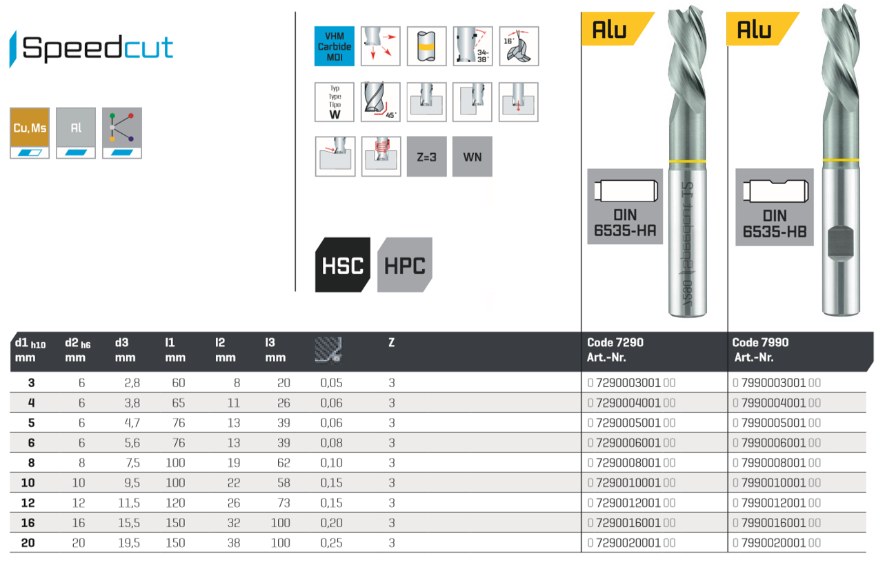 SC-SPEEDCUT Aluminium, Ø 5.0 Z=3, 34-38°, XXL, relieved, cyl.shank DIN 6535-HA 6535-HB