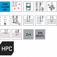 Высокопроизводительная концевая фреза для универсального применения. Чистовая, черновая и черновая обработка одним и тем же инструментом. Различные углы спирали влияют на плавность хода без вибрации и отличную поверхность. Высокая производительность резки.