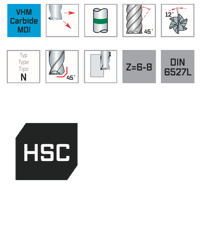 Высокопроизводительная концевая фреза с твердосплавным покрытием для универсального применения, отлично подходит для фрезерования пазов и черновых карманов. Большое пространство для стружки, агрессивный разрез и динамическое пространство для стружки для оптимизированной транспортировки стружки Различные спиральные углы влияют на плавность хода без вибрации. Благодаря меньшему энергопотреблению также подходит для приводных инструментов на токарных станках с ЧПУ (MTC).