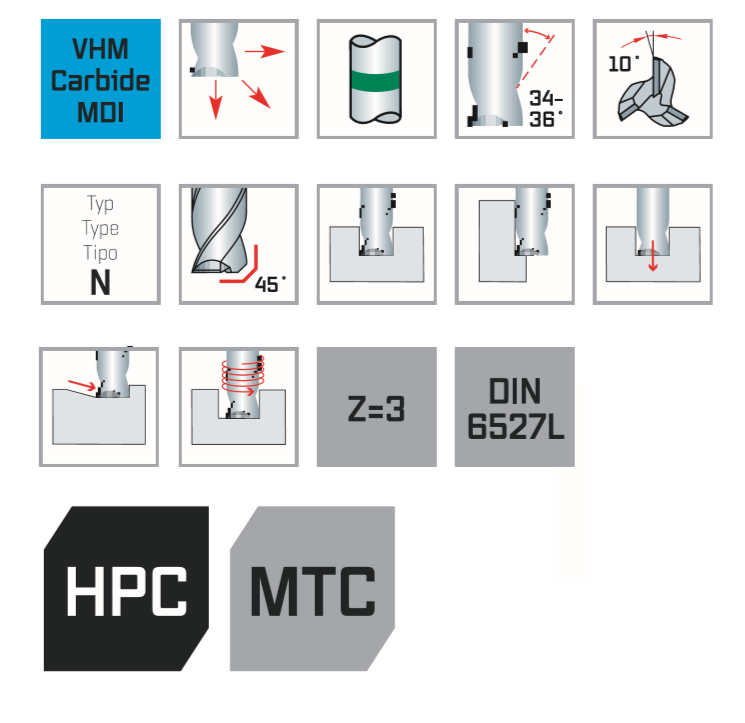 Высокопроизводительная концевая фреза с твердосплавным покрытием для универсального применения, отлично подходит для фрезерования пазов и черновых карманов. Большое пространство для стружки, агрессивный разрез и динамическое пространство для стружки для оптимизированной транспортировки стружки Различные спиральные углы влияют на плавность хода без вибрации. Благодаря меньшему энергопотреблению также подходит для приводных инструментов на токарных станках с ЧПУ (MTC).