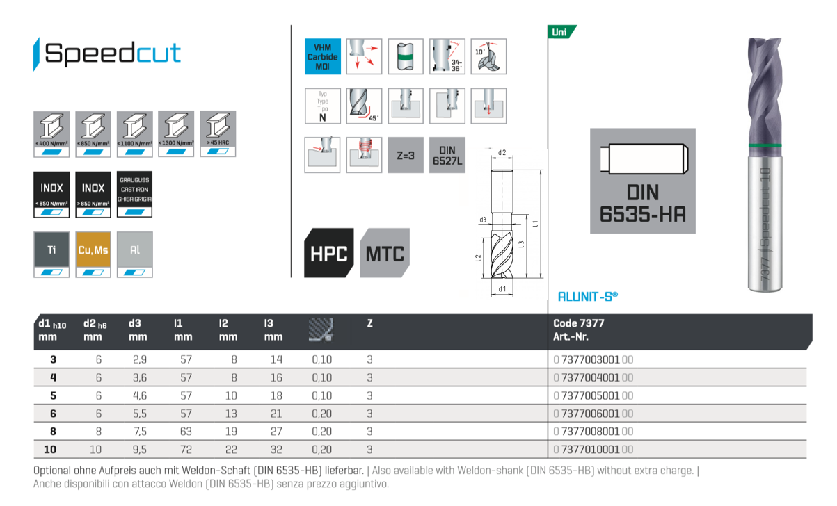 Высокопроизводительная концевая фреза с твердосплавным покрытием для универсального применения, отлично подходит для фрезерования пазов и черновых карманов. Большое пространство для стружки, агрессивный разрез и динамическое пространство для стружки для оптимизированной транспортировки стружки Различные спиральные углы влияют на плавность хода без вибрации. Благодаря меньшему энергопотреблению также подходит для приводных инструментов на токарных станках с ЧПУ (MTC).