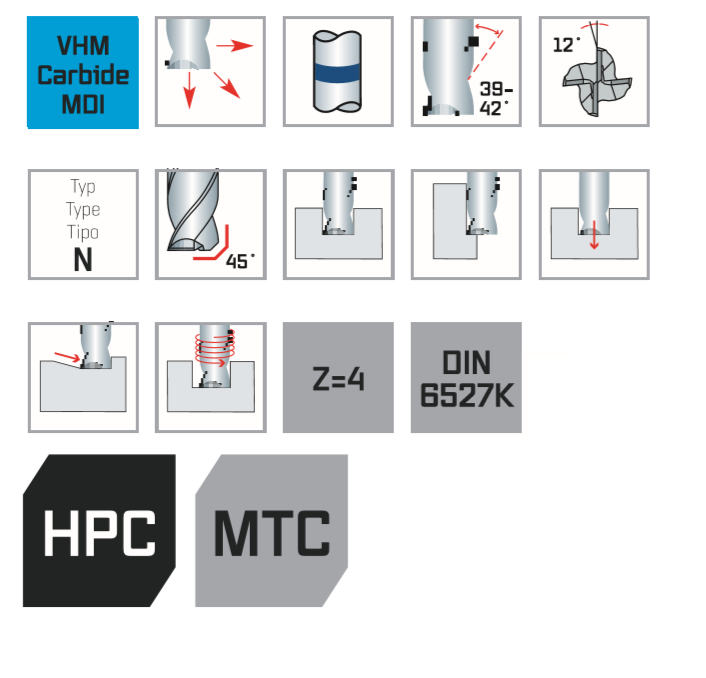 Высокопроизводительная концевая фреза с твердосплавными напайками, особенно подходящая для резки аустенитных нержавеющих сталей: чистовая обработка, черновая обработка и черновая обработка одним и тем же инструментом. Различные углы спирали влияют на плавность хода без вибрации и превосходную поверхность. Высокая производительность резки.