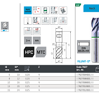 Твердосплавная концевая фреза для универсального применения: короткая, стабильная конструкция и мягкий рез (10 градусов). Особенно подходит для черновой, чистовой обработки и обработки канавок в фрезерных центрах с ЧПУ, в токарных, фрезерных и комбинированных токарных станках. Различные углы спирали обеспечивают плавность хода без вибрации и превосходную поверхность. Высокая производительность резки.