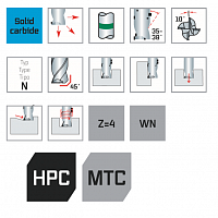 Твердосплавная концевая фреза для универсального применения: короткая, стабильная конструкция и мягкий рез (10 градусов). Особенно подходит для черновой, чистовой обработки и обработки канавок в фрезерных центрах с ЧПУ, в токарных, фрезерных и комбинированных токарных станках. Различные углы спирали обеспечивают плавность хода без вибрации и превосходную поверхность. Высокая производительность резки.