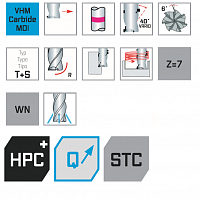 Высокопроизводительная концевая фреза, особенно подходящая для резки титана, никеля, инконеля и специальных никель-хромовых жаропрочных сплавов. Различные углы спирали влияют на плавность хода без вибрации и превосходную поверхность. Очень высокая производительность резки благодаря идеальному взаимодействию материала, геометрии и покрытия.