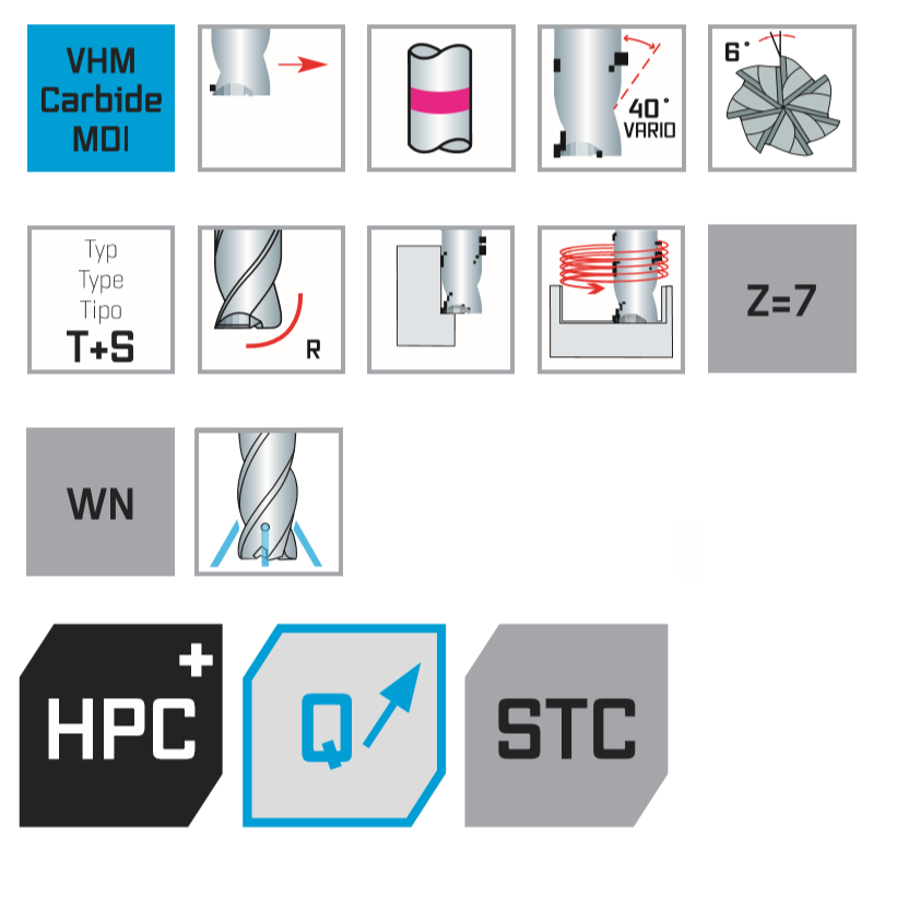 Высокопроизводительная концевая фреза, особенно подходящая для резки титана, никеля, инконеля и специальных никель-хромовых жаропрочных сплавов. Различные углы спирали влияют на плавность хода без вибрации и превосходную поверхность. Очень высокая производительность резки благодаря идеальному взаимодействию материала, геометрии и покрытия.