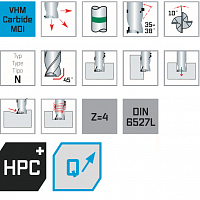 Высокопроизводительная концевая фреза для универсального применения. Чистовая, черновая и черновая обработка одним и тем же инструментом. Различные углы спирали влияют на плавность хода без вибрации и отличную поверхность. Поколение 4.0 устанавливает новые стандарты производительности резки.