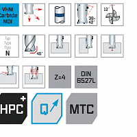Высокопроизводительная концевая фреза с твердосплавными напайками, особенно подходящая для резки аустенитных нержавеющих сталей: чистовая обработка, черновая обработка и черновая обработка одним и тем же инструментом. Различные углы спирали влияют на плавность хода без вибрации и превосходную поверхность. Поколение 4.0 устанавливает новые стандарты производительности резки.