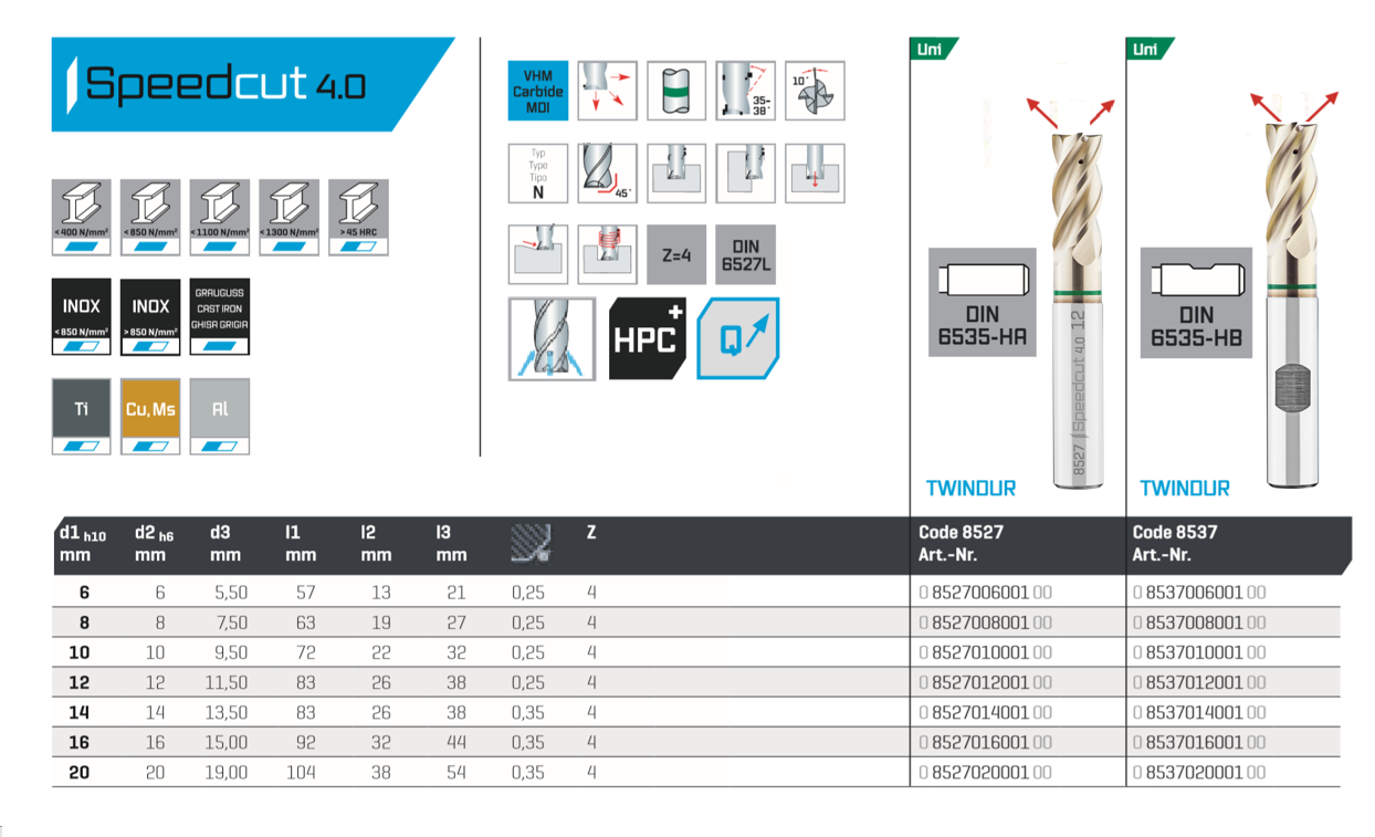 Высокопроизводительная концевая фреза для универсального применения. Чистовая, черновая и черновая обработка одним и тем же инструментом. Различные углы спирали влияют на плавность хода без вибрации и отличную поверхность. Высокая производительность резки.