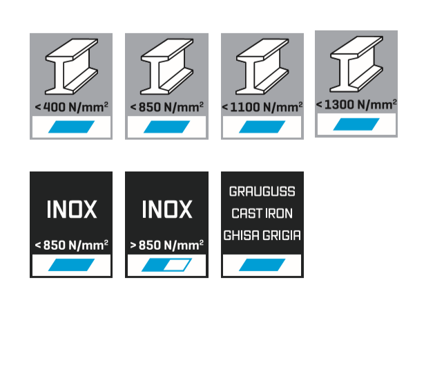 Рекомендуется для фрезерования материалов со средней и высокой прочностью до 1300 Н / мм². Для сверления и последующего продольного и проходного фрезерования.