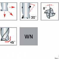 Рекомендуется для фрезерования материалов со средней и высокой прочностью до 45 HRC. Фрезерные канавки с большей глубиной сверления, точные посадки, также подходит для торцевого и кругового фрезерования. Высокие показатели удаления металла и плавный ход обеспечивают превосходное качество поверхности.