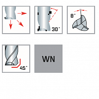 Рекомендуется для фрезерования материалов со средней и высокой прочностью до 1300 Н / мм². Для сверления и последующего продольного и проходного фрезерования.