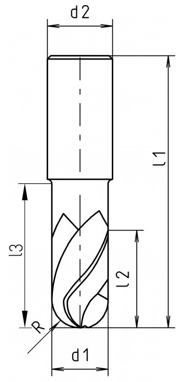 Твердосплавная радиусная концевая фреза с полным радиусом HSC, короткая серия.