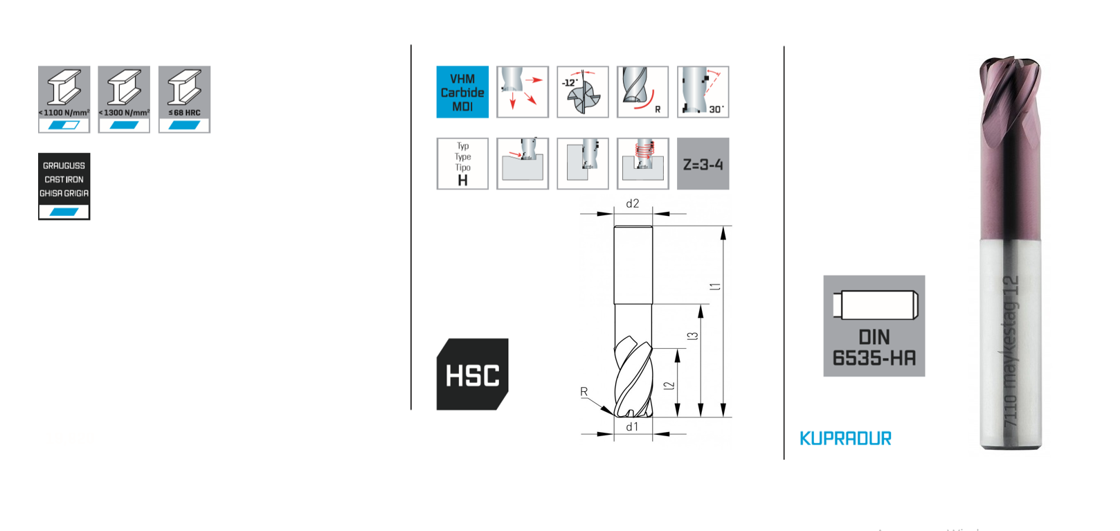 HSC Torus end mill Ø 6.0 short, Z=4, 30°, R=0.5 mm, Kupradur coating, cyl. shank DIN 6535-HA