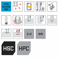 Высокопроизводительная концевая фреза из твердого сплава, особенно для алюминия. Центровка полотна обеспечивает высочайшую стабильность, превосходное разрушение стружки и транспортировку стружки благодаря оптимизированному методу производственного шлифования, поэтому чрезвычайно гладкая поверхность. Максимальный объем резки и превосходное качество поверхности благодаря уникальной геометрии режущей кромки.