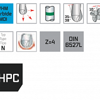Высокопроизводительная концевая фреза для универсального применения. Чистовая, черновая и черновая обработка одним и тем же инструментом. Различные углы спирали влияют на плавность хода без вибрации и отличную поверхность. Поколение 4.0 устанавливает новые стандарты производительности резки.