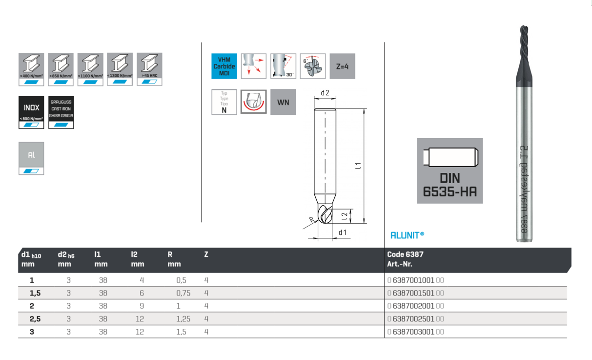 Концевая сферическая твердосплавная фреза MAYKESTAG (VHM) d 3.0 (Z=4) 30°, L-38 ALUNIT