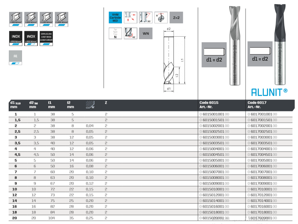 Рекомендуется для фрезерования материалов со средней и высокой прочностью до 1300 Н / мм². Для сверления и последующего продольного и проходного фрезерования.