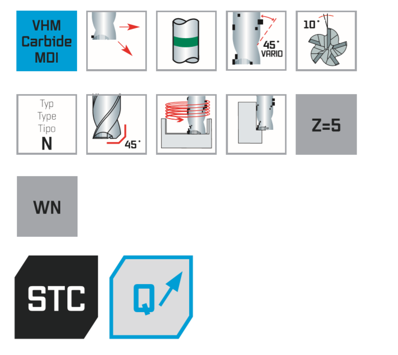 Твердосплавная концевая фреза STC Speedtwister-Universal, длинная серия, различные углы спирали, 3xD для универсального применения. Подходит для статического и динамического фрезерования.. Очень плавная работа и превосходный контроль стружки благодаря современной геометрии инструмента устанавливают новые стандарты в удалении стружки