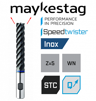 Твердосплавная концевая фреза Speedtwister-Universal с внутренней подачей охлаждающей жидкости, экстра длинная серия, разные углы спирали, 5xD. Для аустенитных нержавеющих сталей. Очень плавная работа и превосходный контроль стружки благодаря современной геометрии инструмента устанавливают новые стандарты в удалении стружки