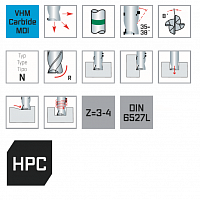 SC-SPEEDCUT Univ., Z=4, Ø 6.0 corner radius=1.5 mm, 35-38°, DIN 6527L, relieved, ALUNIT-S, cyl.shank DIN 6535-HA
