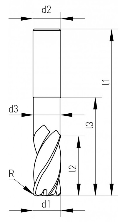 SC-SPEEDCUT Univ., Z=4, Ø 8.0 corner radius=0.5 mm, 35-38°, DIN 6527L, relieved, ALUNIT-S, cyl.shank DIN 6535-HA