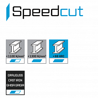 Высокопроизводительная концевая фреза , особенно подходящая для обработки закаленных и высокопрочных сталей. Высокий уровень жесткости обеспечивает хорошую скорость подачи и длительный срок службы, в то время как угол спирали создает очень хорошее качество поверхности обрабатываемой детали. Фреза используется для кругового фрезерования (чистовая обработка). Для небольших глубин также возможна резка, в этом случае скорость подачи должна быть уменьшена на 50%.