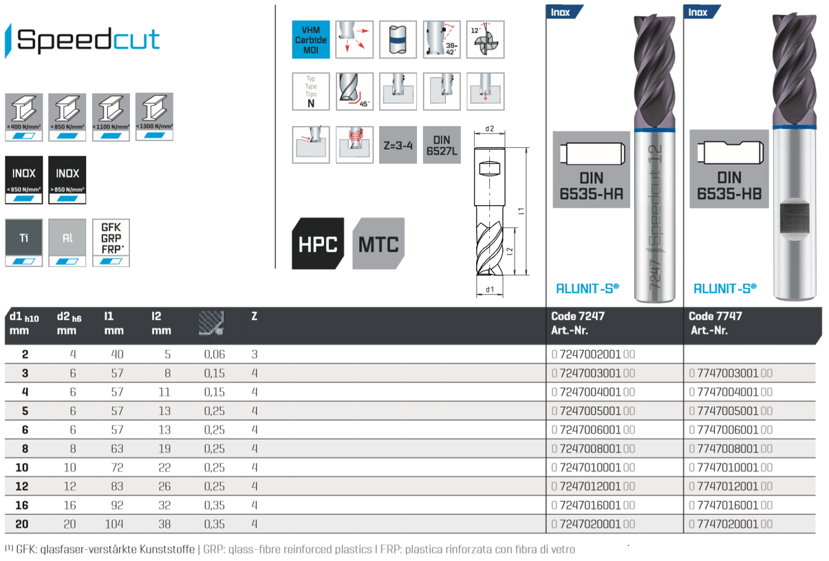 SC-SPEEDCUT Inox, Z=3, Ø 20.0 39-42°, DIN 6527L, ALUNIT-S cyl.shank DIN 6535-HA, ALUNIT-S