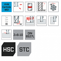 Высокопроизводительная концевая фреза , особенно подходящая для обработки закаленных и высокопрочных сталей. Высокий уровень жесткости обеспечивает хорошую скорость подачи и длительный срок службы, в то время как угол спирали создает очень хорошее качество поверхности обрабатываемой детали. Фреза используется для кругового фрезерования (чистовая обработка). Для небольших глубин также возможна резка, в этом случае скорость подачи должна быть уменьшена на 50%.